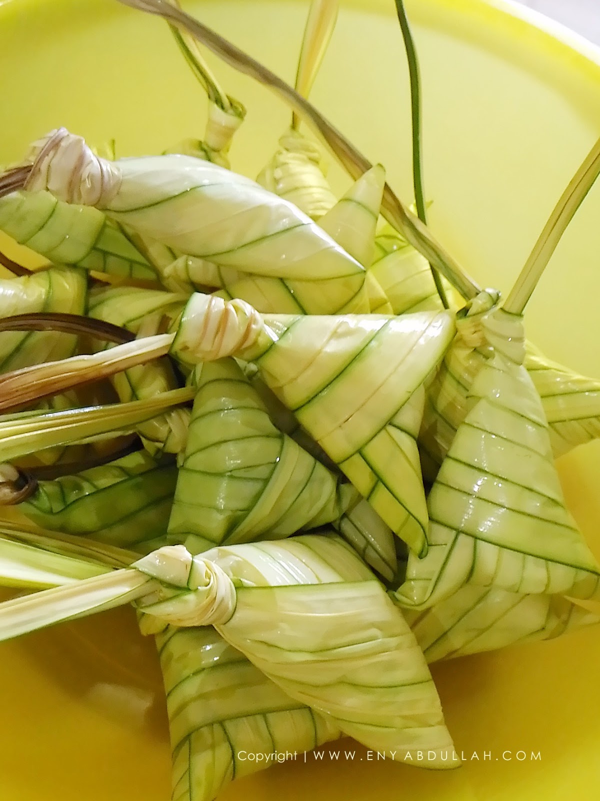 REBUS 4-5 JAM Sebenarnya masa yang diperlukan untuk merebus ketupat hingga masak adalah diantara 4-5 jam. Ketupat harus masak sempurna untuk mengurangkan risiko untuk basi. Jika ketupat masak sempurna, ketupat tidak akan lembik dan berair. Ketika merebus, harus pastikan seluruh ketupat terendam dalam air. IKLAN 5. TOS DAN GANTUNG Ini bukan ada resepi ya, tak pandai pun nak anyam ketupat :D. Ketupat pulut yang ditempah tapi tak masak lagi, sebab ketupat yang tempah tak direbus lagi. Kalau nak ambil simpan frozen pun boleh. Biasanya, ketupat ini, bonda lah yang tempah. Disebabkan tak masak lagi, jadi terpaksa kena rebus. Nasib baik ada noxxa.
